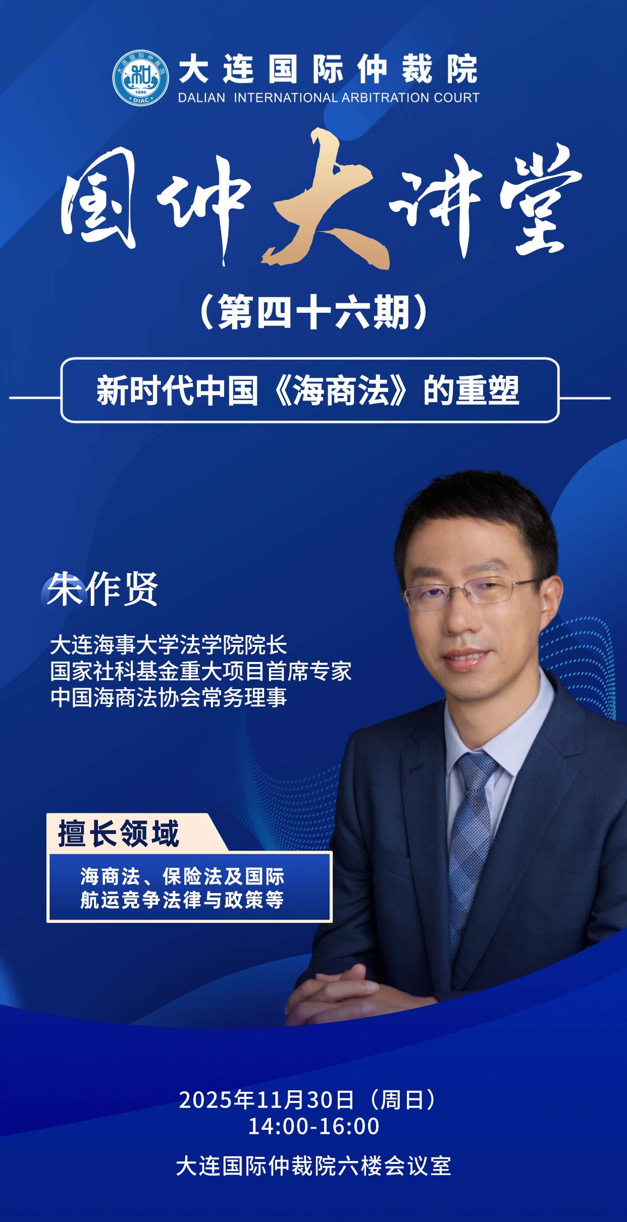 活动预告 |【国仲大讲堂(第四十六期)】朱作贤:新时代中国《海商法》的重塑